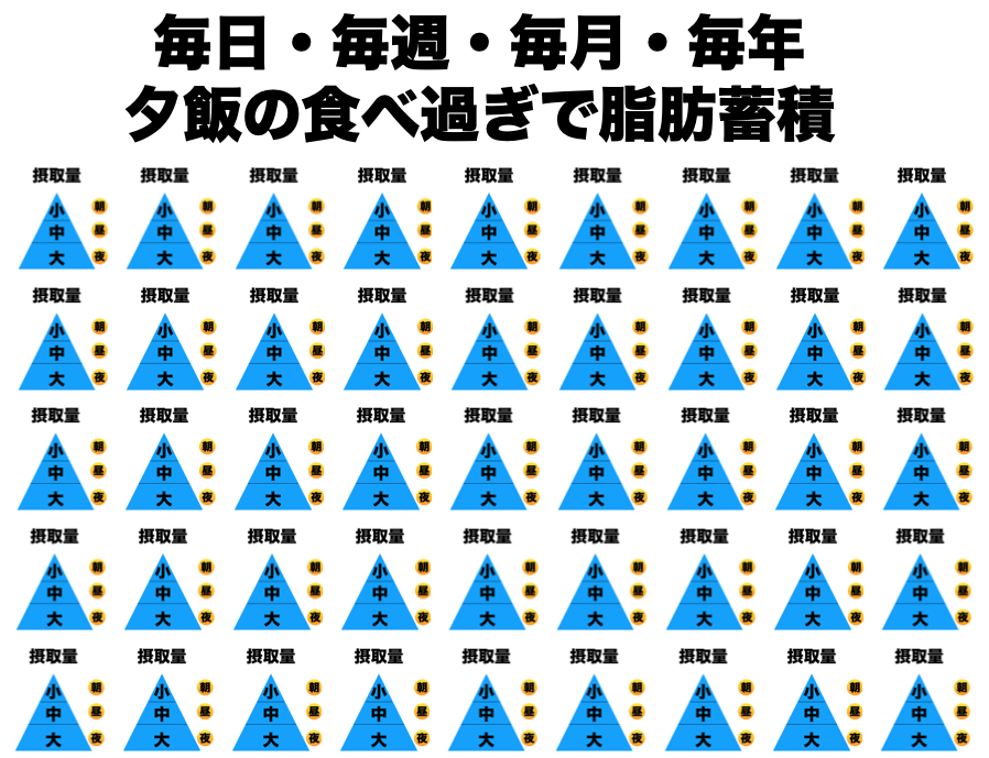 夕飯を食べ過ぎてそのカロリーを消費できないからすべて脂肪に変えてしまってるんですね。